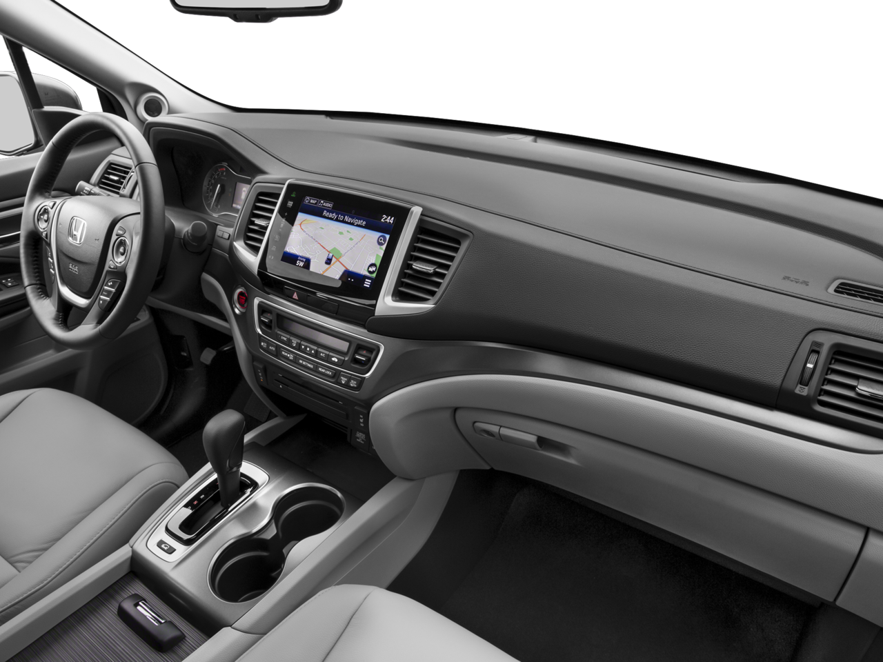 - Full Floor Console w/Covered Storage, Mini Overhead Console w/Storage, Conversation Mirror and 3 12V DC Power Outlets