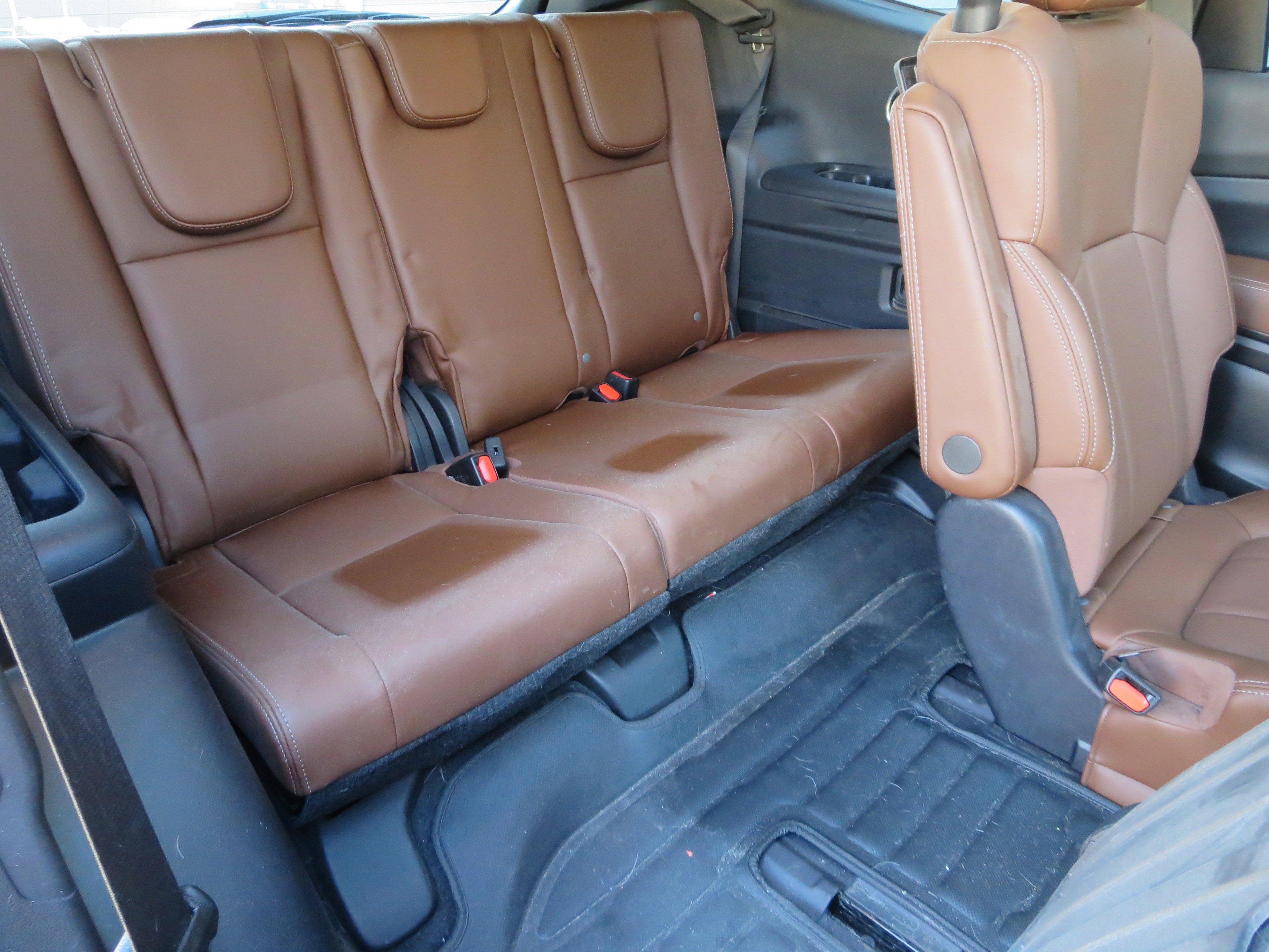 - Fixed 60-40 Bench Leather 3rd Row Seat Front, Manual Recline, Manual Fold Into Floor, 3 Manual and Adjustable Head Restraints